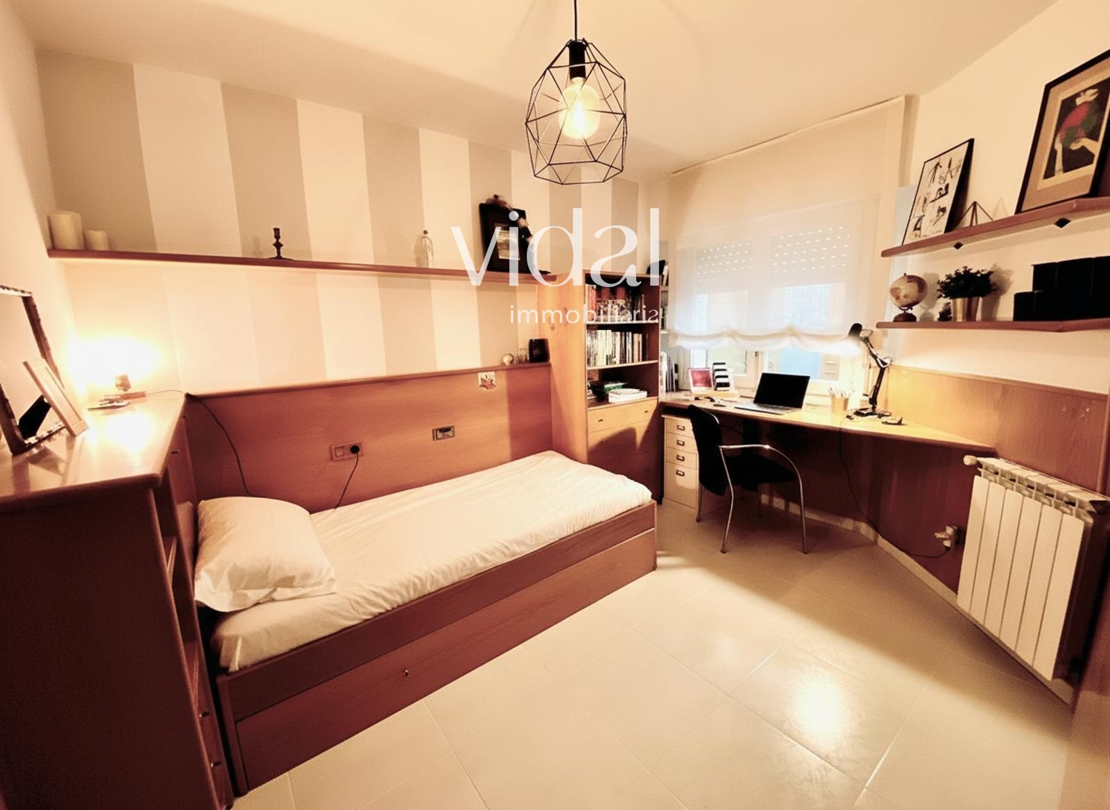 Ampli i espaiós pis de 5 dormitoris i 3 banys. Distribuit en zona de dia i zona de nit. Zona de dia: ampli saló menjador, molt lluminós amb sortida a balcó on hi pots posar taula i 4 cadires; cuina office amb zona per menjar i sortida a rentador, bany petit amb dutxa, despatx amb balcó ideal per treballar. A la zona de nit: 1 dormitori amb balcó tipus suitte amb el bany amb plat de dutxa i recentment reformat, 2 dormitoris dobles (amb armaris encastats i balcó) 1 dormitori individual, 2 banys (1 banyera, 1 plat de dutxa) . Calefacció a gas natural. Pocs veïns. Espai Gironès, a tocar AP7, Mossos d'Esquadra, Hospital Santa Caterina, escoles i Institut de Secundària Salvador Espriu. Tansport públic a Girona a 100 metres. Instal·lació d'ascensor.